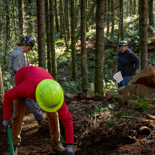 Forty-five volunteers showed up at CLIMB on March 21 and delivered one of the most productive dig days of the season.   Finishing Peregrination and Improving Flow The biggest milestone of the day was completing the eastern section of Peregrination. Crews hand-finished the trail following earlier machine work, helping connect the system into more cohesive and rideable loops. This improvement reduces … Read More