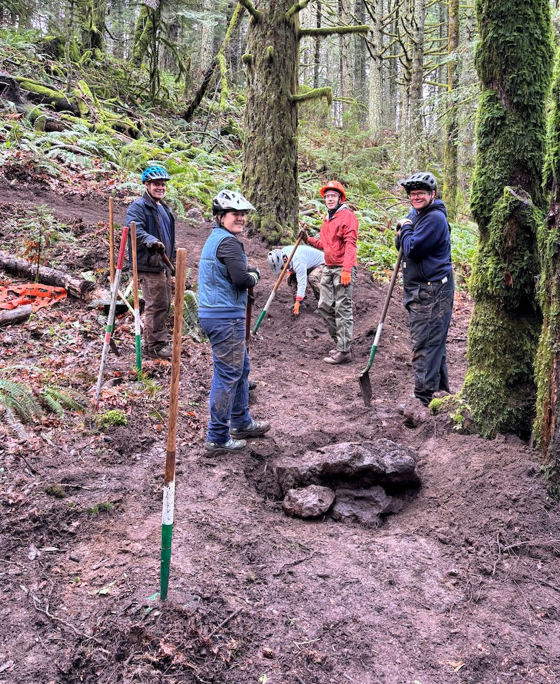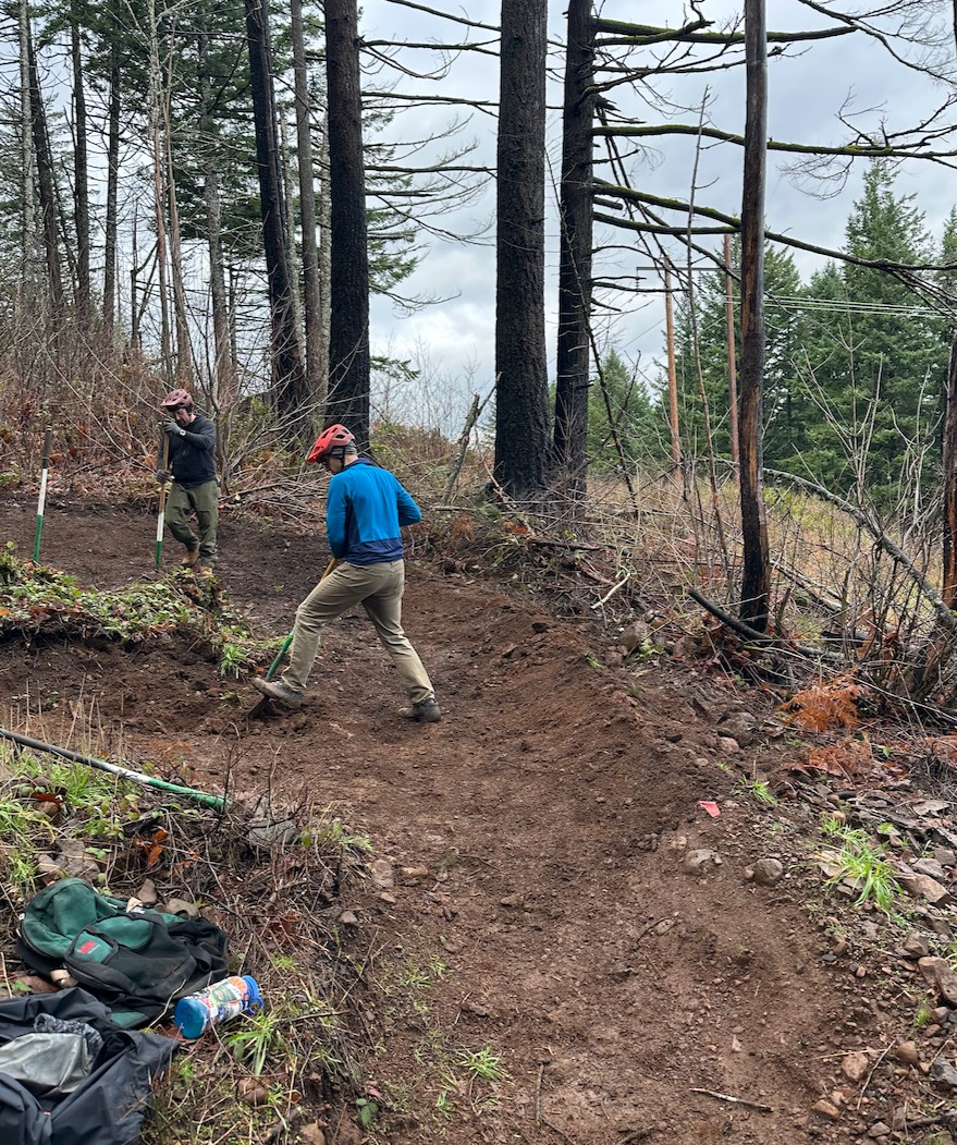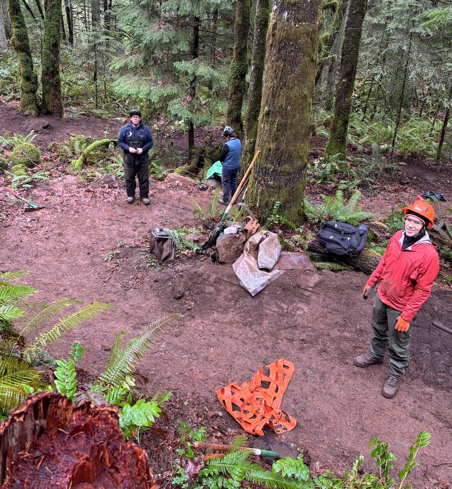 Another productive dig day is in the books at CLIMB, with volunteers showing up on December 20 to continue improving one of the region’s most loved trail systems. With cooperative weather and a motivated crew, the team made meaningful progress on both Ouroboros Loop and Buteo Drop.