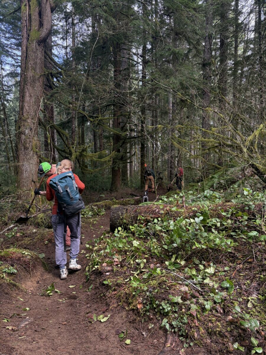 Ten volunteers headed out to Tillamook State Forest on March 7 and made significant progress along the Gales Creek Trail.