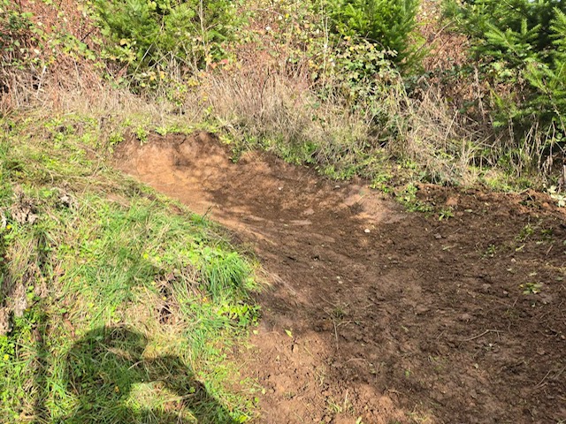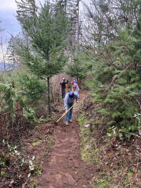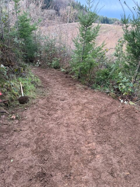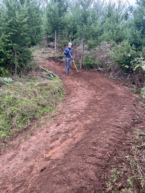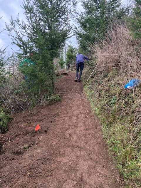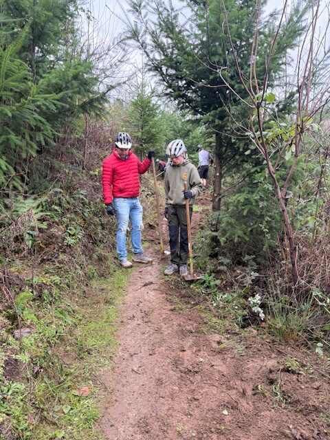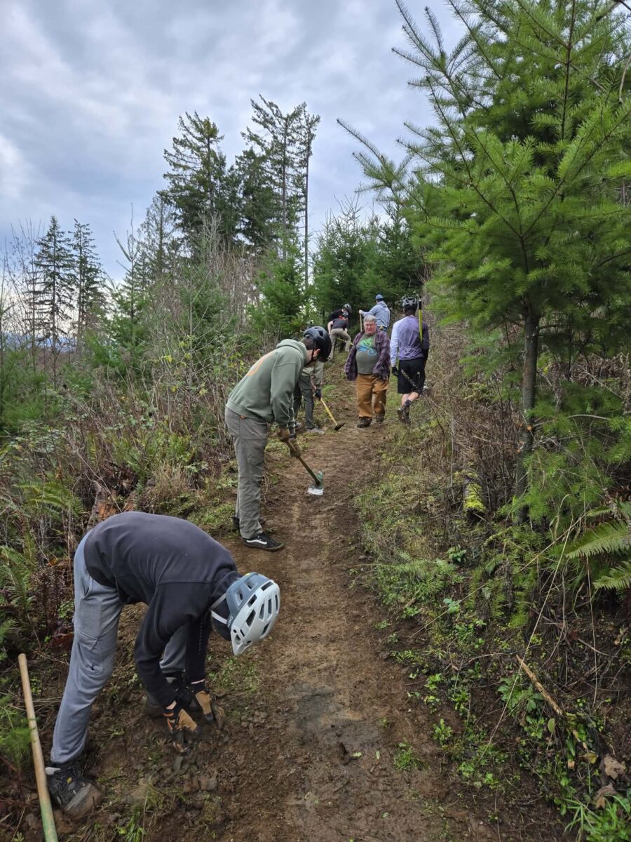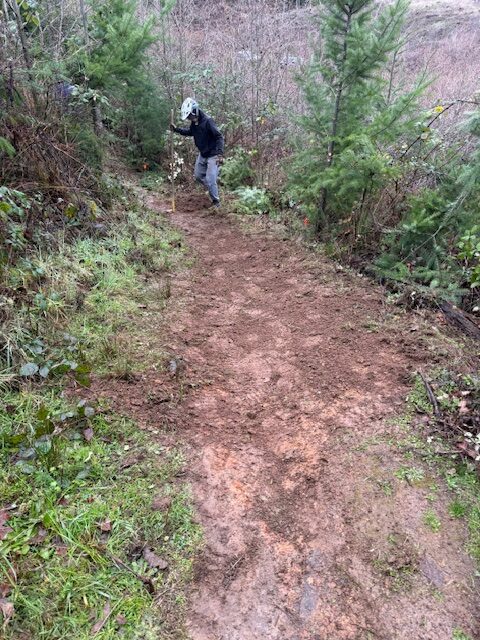 The group focused on addressing several problem areas along the trail. Volunteers rebuilt tread in sections that had turned into trenches, reshaped berms to improve flow and make the downhill ride more fun, trimmed back encroaching trees, and completed critical drainage work to help the trail hold up through wet conditions.