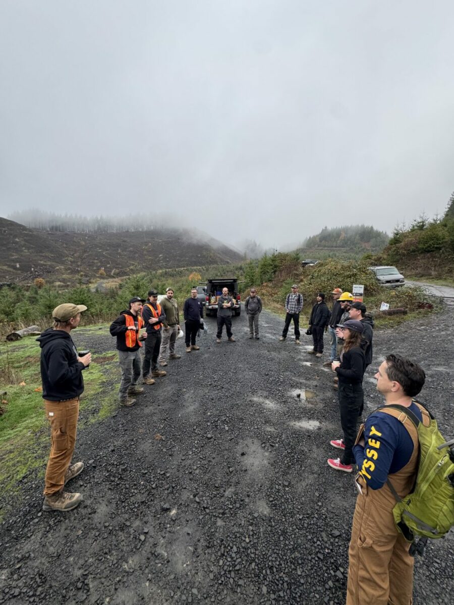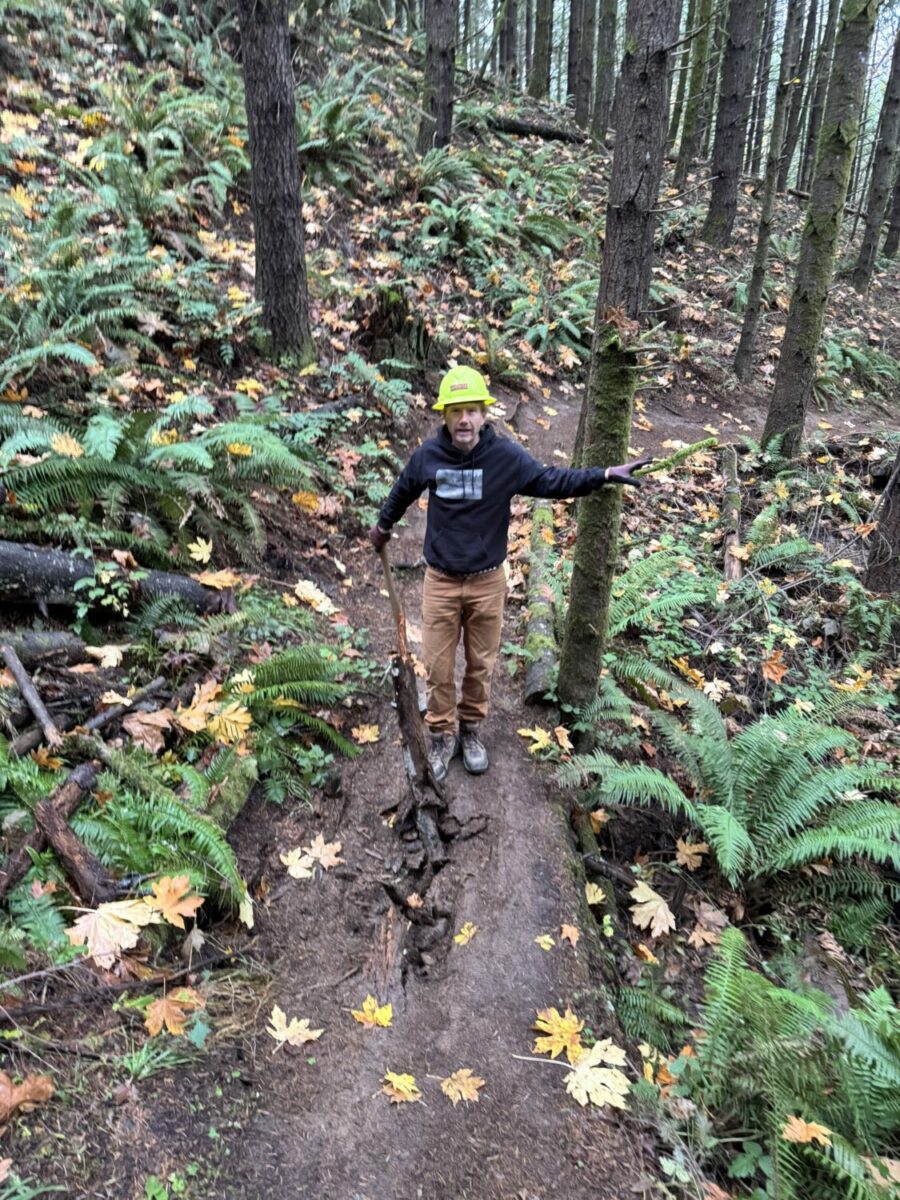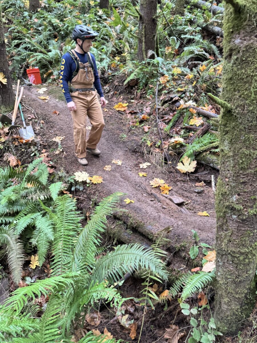 On November 15, a crew of 17 volunteers gathered at Rocky Point to give Levitation some much-needed attention. This trail has a personality all its own, and the team focused on improving one of its trickier features: a loose, off-camber berm marked by an exposed root and tired logs that had long outlived their usefulness.