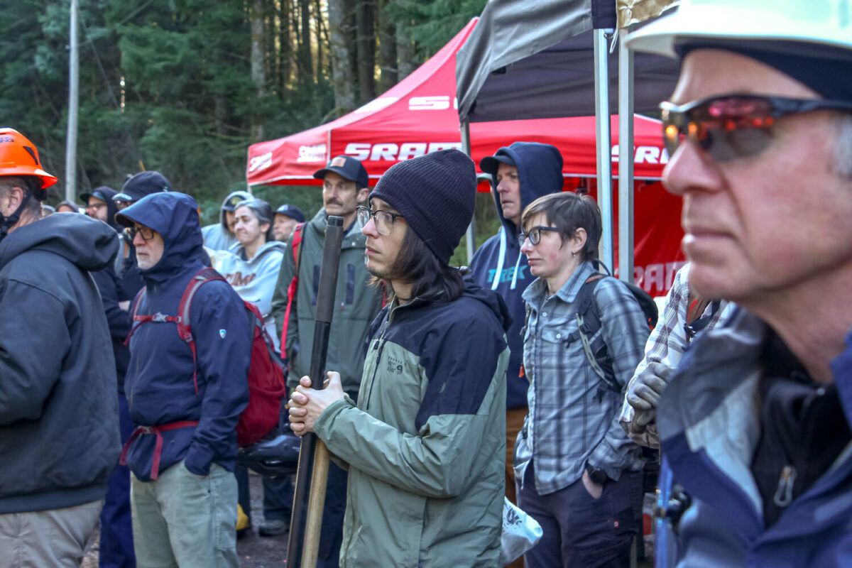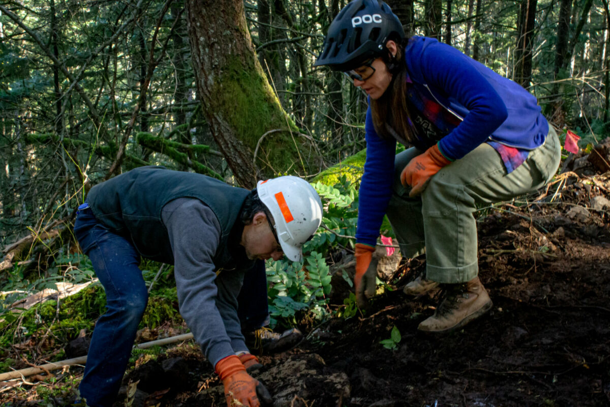 This dig day was powered by a large and motivated group, with strong support from Metropolis Cycle Repair and Portland Design Works. Both partners brought out employees, friends, and family, along with coffee, donuts, and plenty of stoke to keep the day moving.