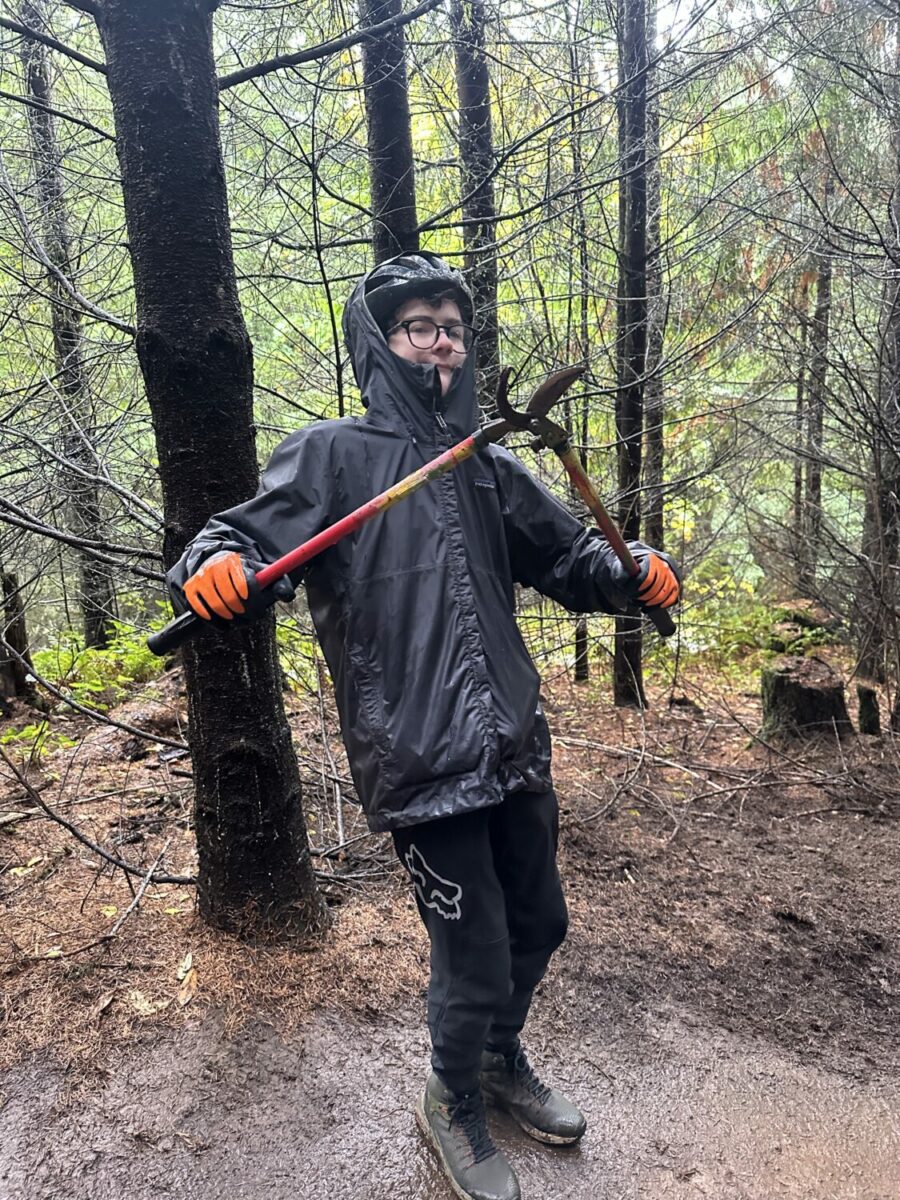The crew focused on raking, trimming trees, and addressing a few problematic drainage spots and corners. Despite the wet weather, everyone powered through to make Wind Up more sustainable for the heavy traffic it sees throughout the year.
