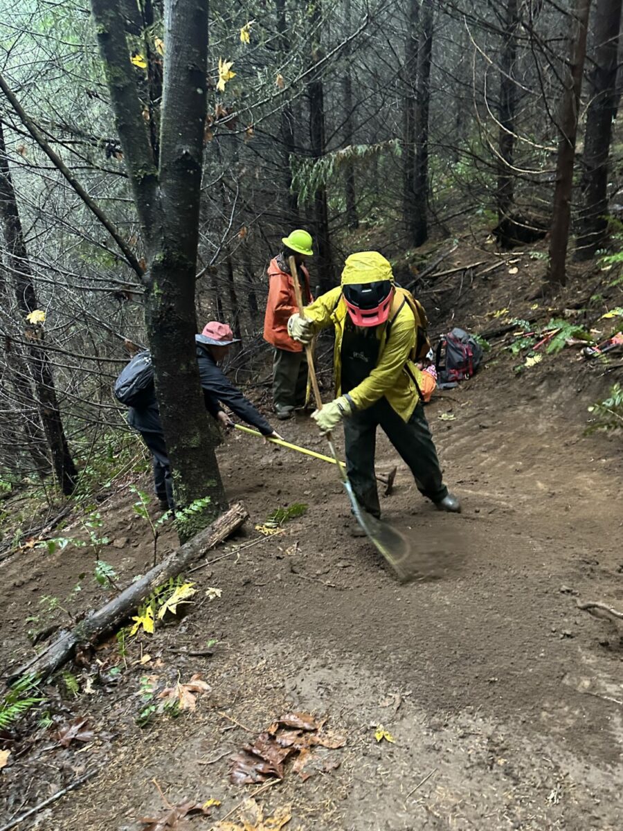 Even an atmospheric river couldn’t stop the stoke. On October 26, nineteen dedicated volunteers showed up at Rocky Point to take on much-needed maintenance work on Wind Up, one of the system’s most popular trails.